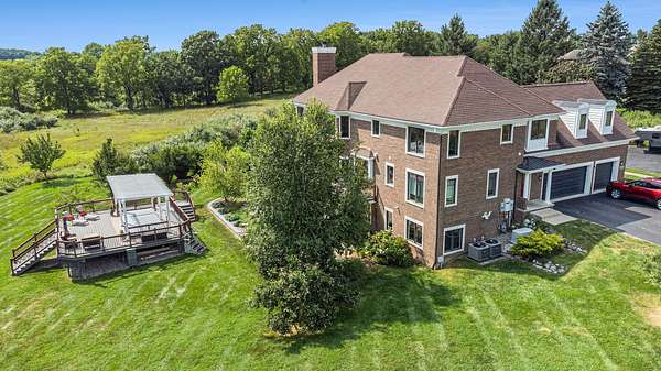 Landau beautifully custom built home situated on 2.71 acres in a cul-de-sac surrounded by nature and privacy. Brick home with upgraded finishings throughout. A welcoming covered porch invites you into a entryway and two-story foyer with an elegant staircase. The private first-floor office/piano room has a custom full wall book/display case. Spacious open concept on the main level brings to you a formal dining room, an exquisite culinary kitchen with prep area, and breakfast room with ample natural lighting. Enjoy the cozy living room with a wood burning fireplace and separate sun room to enjoy your morning coffee. Large mudroom with closet and built in desk. A drywalled 3 car attached garage with an EV charging system. Natural gas whole house backup generator. Invisible fencing for dogs. updated carpet and beautiful hardwood floors. Zoned heating, 2 new AC Condensers, Trex composite decking on the balcony overlooking the beautiful landscaping. Main level ensuite guest room. Upper level with master suite, with dual closet, garden tub, dual vanities and tiled shower. Additional bedrooms with walkin closets, 2 full additional baths, and a bonus room. Upper level laundry. Upper-level private office with glass french doors. Walkout finished basement with entertainment area including a wet bar with beverage cooler and workout area. Nicely sized guest quarters with bedroom and full bath. The exterior offers a covered patio, pergola that can be covered in the cooler months and an elevated Michael Phelps swim pool, and jacuzzi with a large deck seating area. Easy care native plant and rock garden. The well kept landscape offers ornamental and fruit trees. 2 additional refrigerators in garage included and 3 large safes are negotiable.