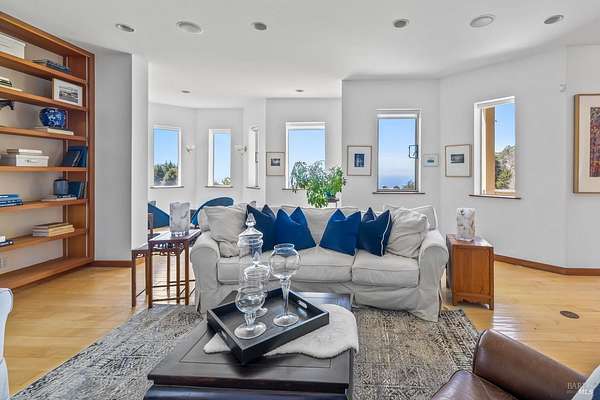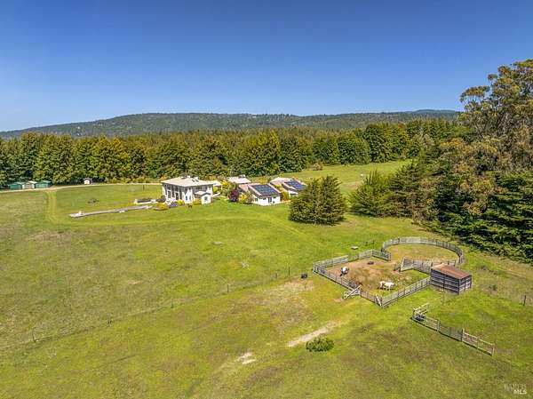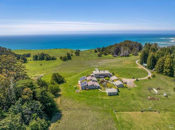 Some places speak to the soulwhere the raw power of the Pacific meets California's rugged northern cliffs, and wild horses still roam free above the sea. Welcome to Schooner's Ranch: 84 acres of coastal majesty perched above the horizon on iconic Highway 1. Just a scenic drive from the Bay Area, yet a world apart, this estate offers serenity, scale, and refined modern living. At its heart is a 4,200 sq ft main residence, surrounded by five additional structures forming a private compound. A flagstone courtyard and pond reflect the shifting sky, while walls of glass frame ocean vistas, meadows, and forests. The chef's kitchen features quartz counters, Sub-Zero and Miele appliances, and curated lighting. Two expansive primary suiteseach with private balconiesanchor the home. The Southern Suite is sunlit and serene; the Northern Suite includes a redwood-wrapped study. Additional highlights: a third bedroom/gym, private office, and separate guest cottage with pasture views. Two 1,500-sq ft light-filled studios are ideal for creative or wellness use. Equestrian facilities include a corral, pen, vet stall, and 70 fenced acres. With solar, generator, and 27,000 gallons of water storage, Schooner's Ranch is a legacy retreat built for sustainable living.