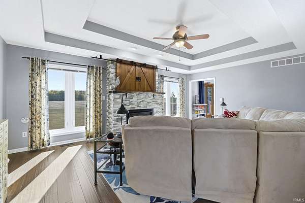 Welcome to this stunning 3 bed, 3 bath home that offers gorgeous updates, comfort, and outdoor enjoyment on a peaceful 6.49 acre setting. Step inside to discover a completely remodeled kitchen with quartz countertops, ceramic tile floors, and updated cabinetry. The open layout continues with high-end LVP floors, fresh paint, and new windows (2 yrs old with a lifetime warranty). The master suite is a private oasis, with a whirlpool tub, walk-in closet, and a stylishly updates also featuring quartz counters. The finished basement offers more open living space, a kitchenette, and two more private rooms. Enjoy year-round comfort with a 3 yr old furnace and A/C system for added efficiency and peace of mind. Outside, enjoy your own half-acre stocked pond and explore the 1 acre of woods with trails and great hunting, making this home ideal for nature lovers and outdoor enthusiasts. There is so much more to add about this great home including the garden, orchard, detached shop, and so much more! Request a Property Information Packet and schedule your private tour today!