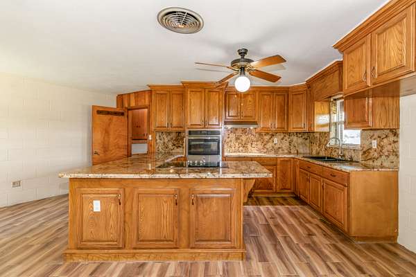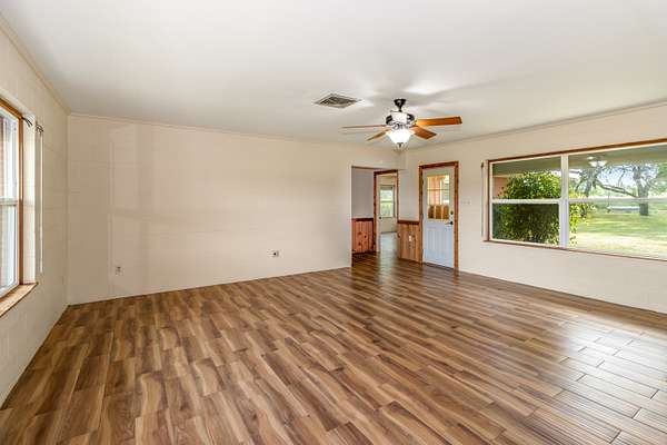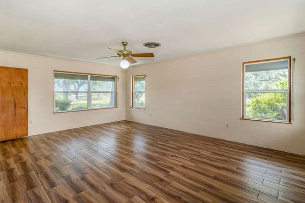 Discover the endless possibilities with this 4-bedroom, 3-bath ranch-style home nestled on 13.12 acres of prime land. The interior features modern updates, wood-like tile flooring, granite kitchen countertops, Hunter Ceiling Fans, and a sleek open-concept living/kitchen area. With livestock allowed and an existing agricultural exemption, this property is ideal for farming, ranching, or a homestead. Previously used for hay production, it offers a unique business opportunity as well as potential for future development. Mature trees, a horse barn, and open pastures provide both function and charm, while the no-flood zone location and hurricane shutters ensure peace of mind. Whether you're seeking a serene retreat, an income-producing venture, or a place to build your vision, this property delivers it all.