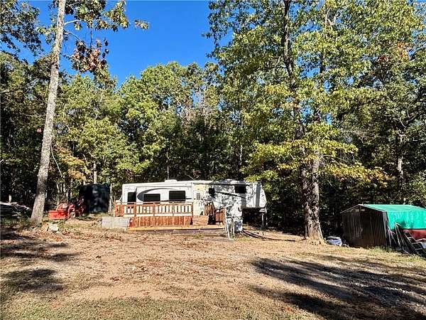 Just five miles from the heart of Yellville, this 5.63 m/l acre property offers the perfect mix of privacy & convenience with no restrictions. Set among hardwoods--mostly oak--the land is cleared around the living area for comfort & seclusion. The 2006 Elite Supreme RV blends style & function with granite countertops, island kitchen, open living area, king-size bed, electric fireplace & a mini-split for efficient heating & cooling. Water Wagon delivers water into a 3,000-gallon potable-water cistern & an owned propane tank, plus gravel drive adds to the easy living. A successful soil morphology test for a 3-bedroom home gives you the flexibility to build when ready. Enjoy the peace of off-grid living just minutes from town & Bull Shoals Lake.