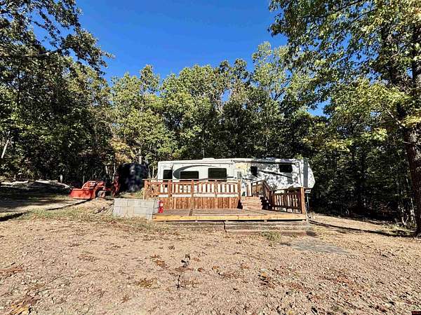 Just five miles from the heart of Yellville, this 5.63 acre m/l property offers the perfect mix of privacy & convenience with no restrictions. Set among hardwoods--mostly oak--the land is cleared around the living area for comfort & seclusion. The 2006 Elite Supreme RV blends style & function with granite countertops, island kitchen, open living area, king-size bed, electric fireplace & a mini-split for efficient heating & cooling. Water Wagon delivers water into a 3,000-gallon potable-water cistern & an owned propane tank, plus gravel drive adds to the easy living. A successful soil morphology test for a 3-bedroom home gives you the flexibility to build when ready. Enjoy the peace of off-grid living just minutes from town & Bull Shoals Lake.