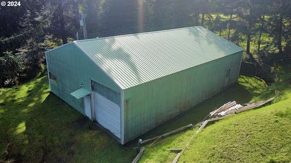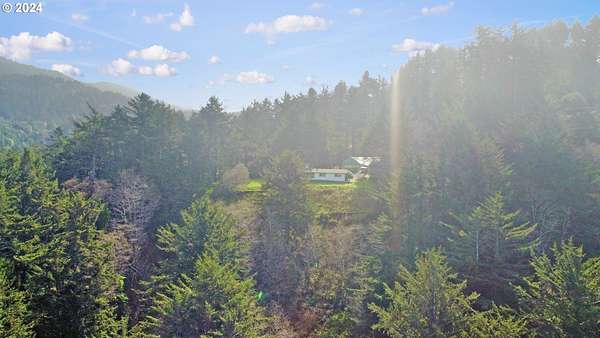 Overlook the Pacific Ocean and Hunter Creek in the comfort of this single-story home. 3.21 private acres and two tax lots in the Hunter Creek area with ocean views to the north and mountain views to the east. Perched atop a hill, this property offers a serene setting. For those seeking the tranquility of the countryside surrounded by gorgeous trees, but also the convenience of nearby town amenities, this property has a nice blend of seclusion and accessibility. Come make this home yours with some TLC and updating or you could start new and build your dream home with stunning views. The huge 2400 sqft metal shop with a concrete slab and a large door for easy access gives you ample space for storage, equipment, and workshop hobbies. This property is ideal for those with a need for lots of tools and recreational equipment. The property offers a rare combination of natural beauty, practical amenities, and a sense of escape. Privacy, land, a huge shop with power, and ocean views! What more could you ask for in Gold Beach? Call for more info and come see this property for yourself!
