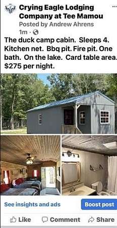 Crying Eagle Lodging Company is a wildlife wilderness resort featuring luxury lodges and RV parking. Guests have the opportunity to enjoy Deer hunting, duck hunting, fishing, swimming, kayaking, tennis, hiking, horse back riding, mountain biking, and wildlife tours. The 1000 acre retreat borders Bayou Nepique and offers beautiful woods and lakes. Many species of deer run free in the park for visitors to enjoy. The complex features The Eagle Lodge, The Cottage, the Bungalow and a quaint small cabin. Nestled in the woods of Cajun Prairie Country, the resort is close to Lake Charles, Lafayette, Crowley, Eunice and Jennings. Our location is perfect to explore all that Cajun Country has to offer. This spectacular place is also a great place for vacations, corporate retreats, weddings, and special events. Half of the land is under high fence which is home to 8 different kinds of exotic deer and native animals. Property has a retail deer population of over $800,000. As an added feature, enjoy one the Cajun Country's best restaurants, DI's Cajun Restaurant.