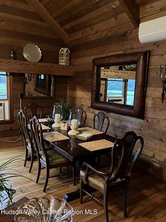 Spectacular, peaceful and unlike any other is what you will find here on game game road. Once part of the Historic Catskill Game Farm and now a successful seasonal rental this beautiful home and property are available. Once you take the long drive in you can feel your disconnect from everything other than nature and peace and quiet. And then you see it, nestled amongst the trees and ponds sits a quaint, lovely cabin surrounded by forest. This serene home boasts a large stone fireplace with insert, sliding glass doors that lead to a nice open deck overlooking the pond for entertaining, large windows that bring in the light and the wonderful surroundings, all hardwood flooring, built in cabinets, an amazing kitchen with top of the line appliances, granite countertops, and a super loft area for resting. All dressed and decorated with fine furnishings and a fully stocked kitchen. A must see in person to fully understand and feel the tranquility