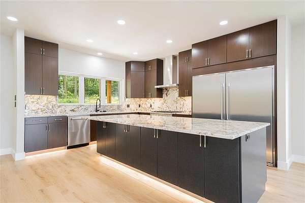 - Built-In Wine Cooler, Decorative Lighting, Double Vanity, Eat-In Kitchen, Granite Counters, Kitchen Island, Open Floorplan, Pantry, Walk-In Closet(s), Wet Bar
