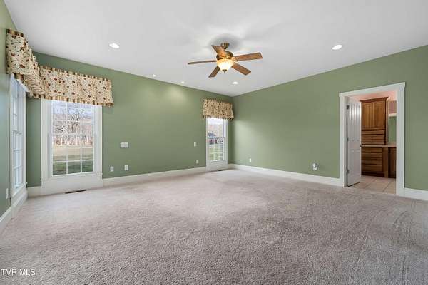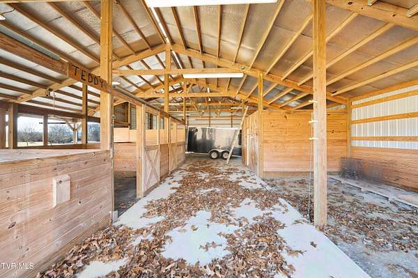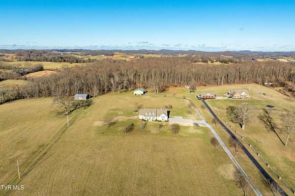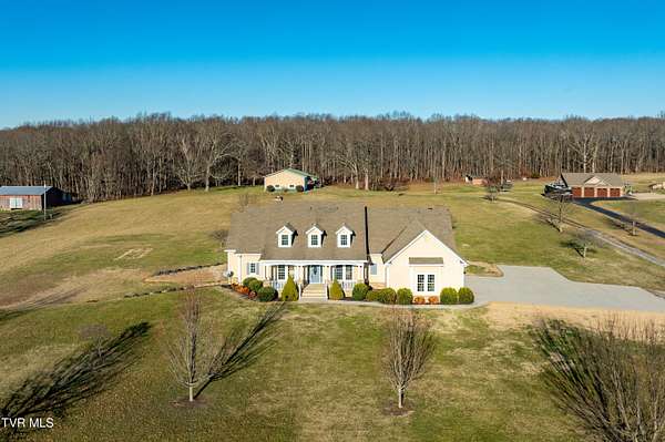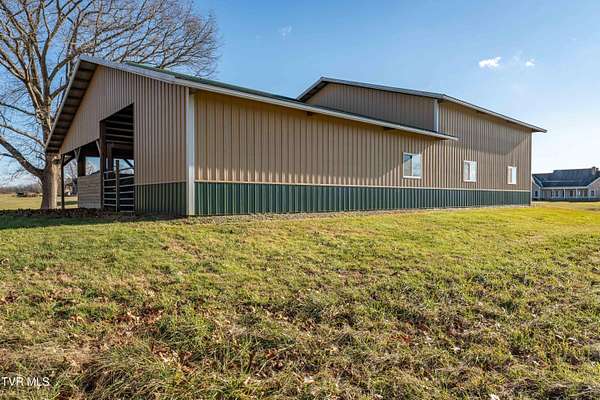 Custom-built home situated on 12.56+/- acres of equestrian property in Limestone, TN. This home offers spacious living, functional design, and high-quality finishes throughout, with 1,700+/- SF of unfinished space ready for future build-out and added equity. The home features a stone and durable HardiPlank exterior, along with an attached three-car garage with a cut-out area for additional storage. Equipped with a highly efficient geothermal heat pump for heating and cooling with Honeywell RedLINK Technology, and a Trojan UVMax whole house water filtration system for superior water quality, this home reflects the highest standards of efficiency, comfort, and uncompromising quality. The main level includes a formal dining room, a flexible living or office space, and a large living room with a rock fireplace and custom built-ins. Expansive windows line the back of the home, offering views of rolling hills and natural light throughout the space. The kitchen is equipped with custom cabinetry, including drawer-style storage for convenience and accessibility, Bosch appliances including a wall oven and microwave combination, and generous counter space for everyday living and entertaining. The main-level primary suite offers direct access to the back porch and includes a tiled walk-in shower, Jacuzzi tub, separate toilet room, and walk-in closets. Also on the main level is a second en-suite bedroom with direct back porch access, two closets, and a private bath with a tiled walk-in shower. A third bedroom shares a hallway bath, providing convenient accommodations for guests or family. Hardwood floors with radiant heat run throughout most of the home, with carpet and ceramic tile in select areas. The lower level features a large living area, a fourth bedroom with a full bathroom and walk-in tiled shower, a full bar with a sink and wine refrigerator, and a bonus room with a closet that could function as an additional bedroom. A modern, high-quality drop ceiling throughout the lower level allows easy, non-destructive access to plumbing, electrical wiring, and HVAC ductwork for inspection, maintenance, or repairs. Two spacious utility rooms provide ample storage. The second level offers 1,700+/- SF unfinished space with rough-in plumbing, ready to be customized into additional bedrooms, living areas, or recreational space according to your vision. The property includes a metal barn with three horse stalls, a heated tack room, wash bay, hay storage, and two large garage bays with oversized doors suitable for tall trailers, boats, or motorhomes. Electricity and water are in place. A pole barn and detached shed at the front of the property provide additional hay storage, housing for large equipment, or flexible space for other agricultural or recreational uses. Zoned A-1, this property offers limitless possibilities for agricultural or equestrian uses-or simply relax and take in the rolling pasture views in a peaceful, private setting. Buyer and/or Buyer's agent to verify all pertinent information.