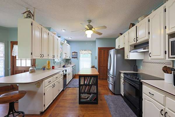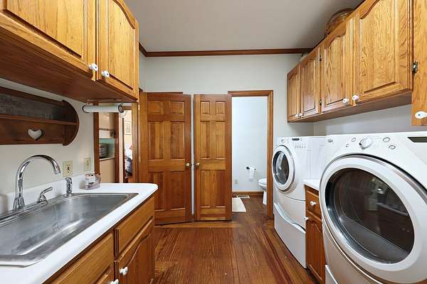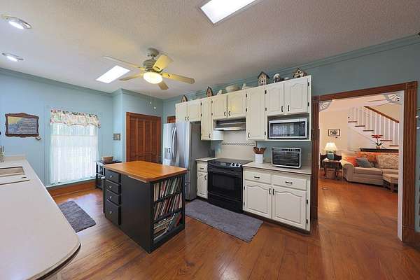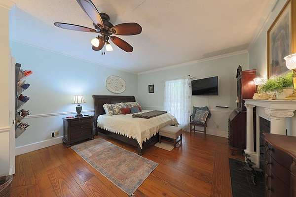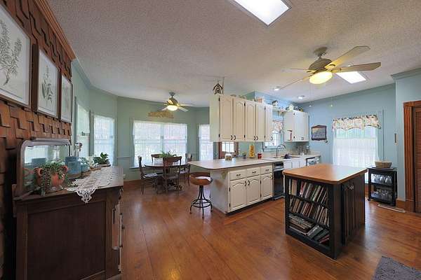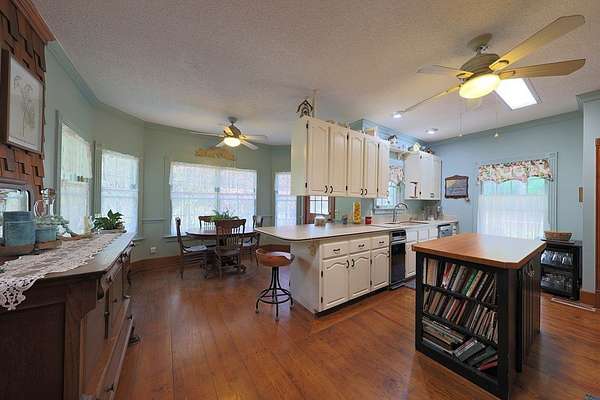 Room To Breathe! Welcome to your private retreat just outside of town! Nestled on 6.75 beautiful acres. Four bedrooms and 3 1/2 bath. The primary bedroom is conveniently located on the main floor with a cozy gas fireplace. Just off the Primary suite you'll find a bright and inviting sunroom, perfect for relaxing with your morning coffee and enjoy the views of the rock garden with a waterfall feature with a fountain. The main level also features a Living Room, a formal Dining Room, Breakfast nook, and a kitchen equipped with all appliances. Elegant hardwood floors run throughout the home. A laundry room with a utility sink and a convenient half bath complete the main floor. Upstairs, you'll find three additional bedrooms and two full bathrooms, offering plenty of space for the family or guests. Outside you will find a refreshed porch that has been newly repainted and upgraded with low maintenance PVC railings. The property also includes a single carport and a spacious double garage, giving you plenty of room for vehicles.