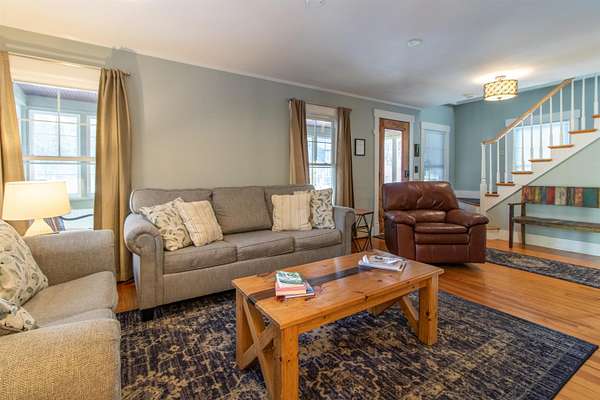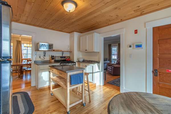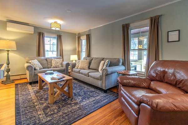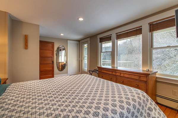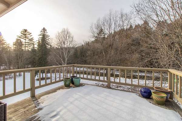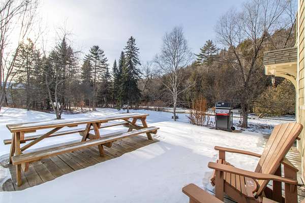 This lovely home is totally set up and ready for you to start enjoying for the beginning of this years biking season. At the beginning of the Village of East Burke, home of the Tiki bar, Publik House, Orange Rind, Cafe Lotti and Hazels all within walking distance. Two bedrooms, full bath and a bonus room on the second floor. A Deck on the 2nd floor as well overlooking the river, access from the master bedroom. Enjoy coffee on the enclosed front porch and dinner on the back deck, barbecuing area. After a day on the trails enjoy your very own water access with lawn to the river's edge, and a firepit. Decks overlooking the river and an outdoor shower, all spread out over 2 acres and a large lawn. Come into the mudroom, laundry area with a 1/2 bath from the back deck. The garage is set up with a bike mechanical area and a bike wash. Large parking area and direct access to the VAST trail. Engineering information showing flood insurance is not necessary.