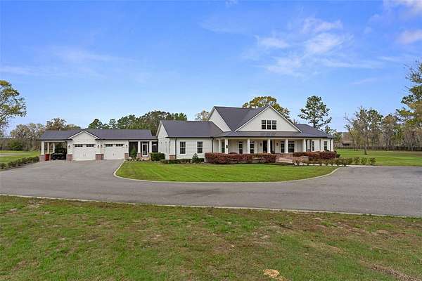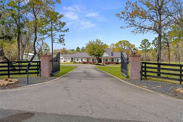 Situated on 8.17 fully fenced and privately gated acres at the end of a quiet cul-de-sac, this stunning farmhouse estate offers the perfect balance of refined living, functionality, and peaceful country lifestyle—just minutes from I-75, the Florida Turnpike, The Villages, and a short drive to the World Equestrian Center.