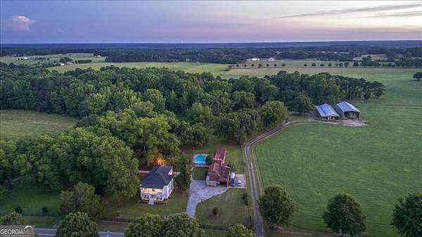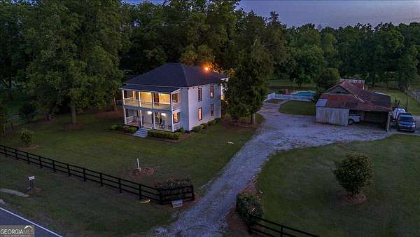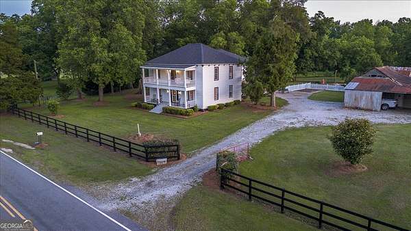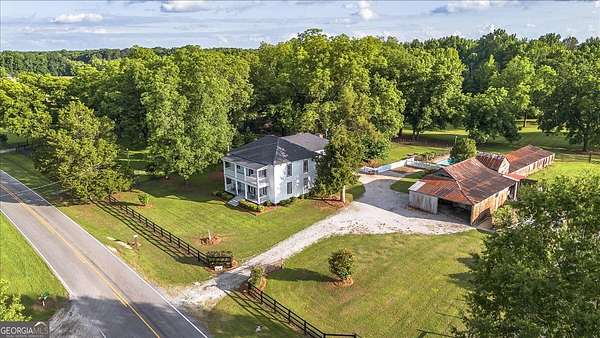 Historic Adair Family Farmhouse: A Timeless Southern Gem Step into a piece of history with the enchanting "Historic Adair Family Farmhouse," a stunning residence built in the 1800s that exudes charm and character. Sprawling across 3,800 square feet, this remarkable home features 5 spacious bedrooms and 3 beautifully appointed baths, all set on a picturesque 3.7-acre mini farm. The property is fully fenced, making it ideal for horses or other livestock, and offers a variety of outbuildings including an original smokehouse, a barn, and a workshop. Enjoy leisurely afternoons by the pool with a convenient half bath located in the barn area, or take a stroll along the creek that meanders at the back of the property. This property also boast 14 majestic pecan trees, 3 fig trees and a stunning 100 year old mulberry tree. Inside, the home boasts a large kitchen, dining area, and living area perfect for gatherings, complemented by a bright and airy sunroom that invites natural light. The main level features two inviting bedrooms and a full bath, while upstairs you'll discover an oversized owner's suite complete with a bath and a generous walk-in closet. Two additional bedrooms and another full bath provide ample space for family or guests. The cozy living room upstairs leads out to a double deck back porch, perfect for enjoying the tranquil views of your sprawling estate. Recent updates include in 2022 a brand-new HVAC system, extensive deck work, 2023 new roof and new paint inside, 2025 new paint outside and much more in 2020, ensuring this historic home combines timeless charm with modern conveniences. Don't miss your chance to own this extraordinary piece of Southern history-schedule a showing today and experience the beauty of the Historic Adair Family Farmhouse for yourself!