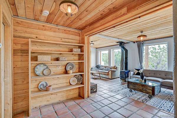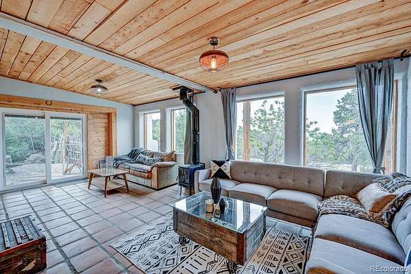 The upper level features an open living area with soaring wood ceilings and expansive windows, showcasing the incredible scenery. Relax or entertain on the view-filled patio, while enjoying radiant heat and a cozy wood-burning fireplace.