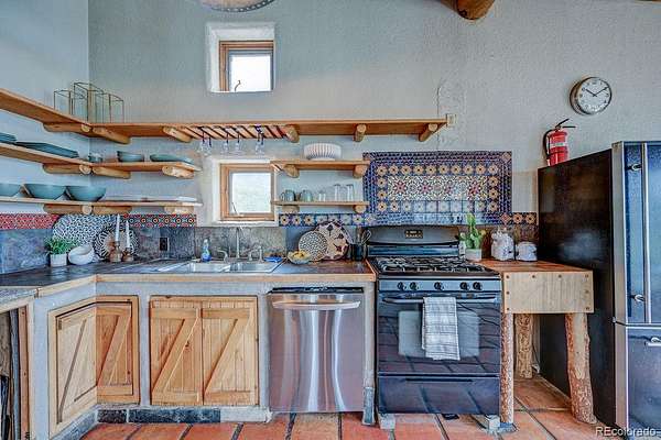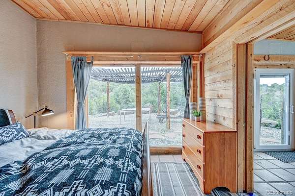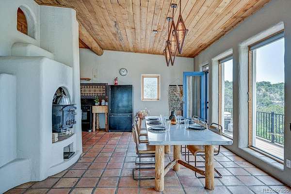 The energy-efficient adobe home spans approx. 2,500 sq. ft. of finished living space. With thick one-foot adobe walls for natural insulation, it features three or more bedrooms in the walkout basement, all with breathtaking mountain views. The spacious primary suite boasts its own private vistas.