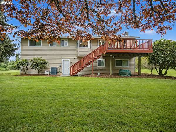 Spectacular location with Mt Hood View and views of grassy Fields to the east and beautifully maintained nursery to the west. 2 large maple trees in backyard for summer hammock leisure time. Home has been renovated to include full kitchen remodel in 2019 with cabinets and quartz countertops, backsplash and S/S Kitchen aid appliances. Recent updates to main floor doors, trim & LVP flooring. Lower floor has new bathroom remodel and new LVP flooring. New siding, windows and roof in 2010. All 3 full bathrooms have been updated. 7x9 room downstairs could be used as office or storage. new furnace and heat pump in 2020. new electrical panel recently installed. Main water line has been replaced in last 10 years. Newer septic tank within the last few years. Newer concrete drive apron in front of garage and front door stairs. Plenty of room for your toys in this 3 Bay 36x48 shop with concrete floors and power. If you love backyard living you will find your peaceful sanctuary here in this amazing rural country setting! this very Centralize location gives great access to Gresham, Portland, Happy Valley, Clackamas, Sandy and Mt Hoods endless activities not to mention endless access to many shopping and dining options.