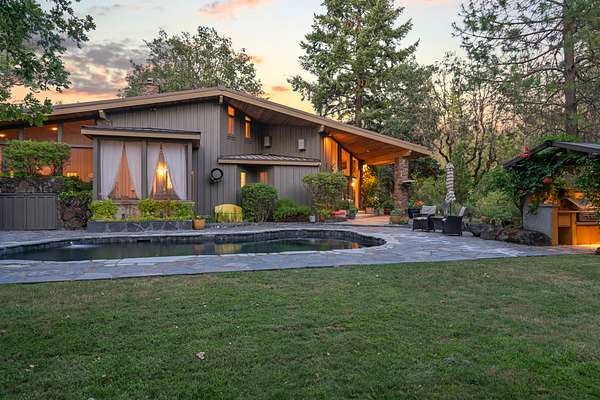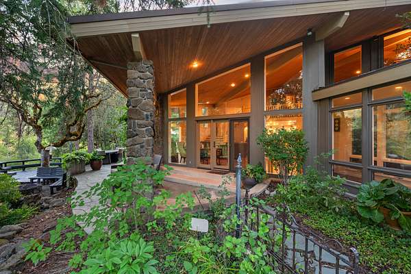 The residence at Cobleigh Road offers an exceptional combination of architectural distinction, natural beauty, and thoughtful design. Built in 1981 and expanded in 1992, the home blends the clean geometry of Mid-Century Modern with the warmth of a Northwest lodge. With 4,763 square feet of finished living area, three bedrooms, and five full baths, it is both spacious and carefully tailored to its setting above Big Butte Creek.