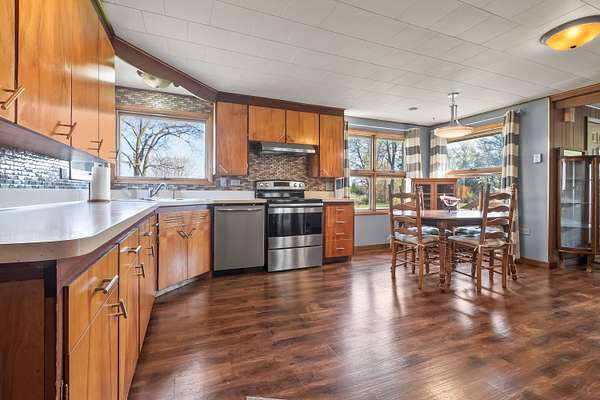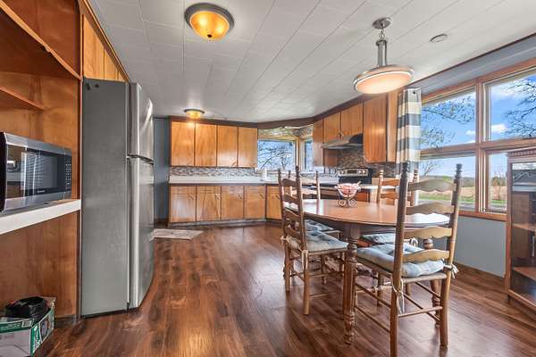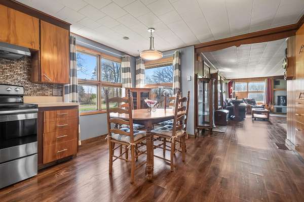 Est $1,426/moGreat location on a paved road! This 10-acre property offers the perfect blend of country living and convenience. The 3-bedroom, 1.5-bath ranch home features an open-concept kitchen, dining, and living area designed for comfortable everyday living. Recent improvements include a new roof and gutters installed in September 2022. Stay warm on chilly Michigan nights with the wood stove fireplace. Additional features include a 2-car attached garage, heated pole barn, and large hip-roof barn ideal for livestock, hay, storage, hobbies, or equipment. Tillable acreage offers potential for crops, pasture, gardening, or hobby farming. Plenty of room for animals, recreation, and outdoor enjoyment.