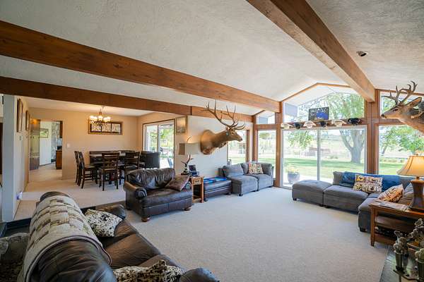 Welcome to your dream retreat in desirable East Medford! Set on 5.05 irrigated acres, this stunning 3 bed, 2.5 bath estate blends luxurious living with country charm. The spacious, well-maintained home features two beautiful living areas, abundant natural light, and sweeping views of the valley and mountains. The expansive primary suite includes a walk-in closet, poolside access, and a spa-like bathroom with soaking tub, stall shower, and built-in steam sauna.