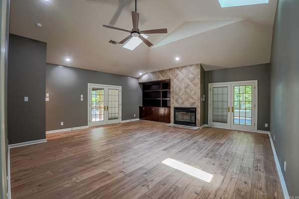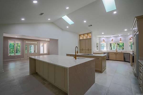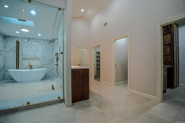 Discover peace and luxury on 10 acres with the Little Maumelle River winding through your backyard, a mountain hillside beyond the creek, and a tranquil front pasture. This 4-bedroom, 4.5-bath home has been beautifully remodeled, blending comfort with elegance. The gourmet kitchen features two islands, perfect for gathering, while three fireplaces and abundant skylights fill the home with warmth and natural light. Every bathroom has been updated with stunning tile, and the master suite is a true retreat—boasting a freestanding tub and an oversized shower with a rain shower cascading from a skylight above. Whether you’re savoring morning coffee on the porch or exploring your private riverbank, this property offers a lifestyle of serenity and sophistication.