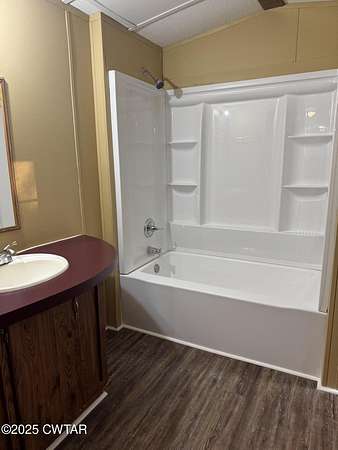 - Blown/Textured Ceilings, Breakfast Bar, Ceiling Fan(s), Double Vanity, Eat-In Kitchen, Laminate Counters, Open Floorplan, Tub Shower Combo, Walk-In Closet(s)