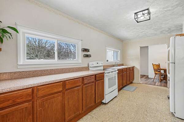 Est $1,219/moDon't miss this move-in ready ranch on a 1.6-acre lot in desirable Fruitport Township. This 2-bedroom, 1-bath home offers 1,050 square feet of comfortable living space filled with natural light, featuring main floor laundry, central air, updated bathroom, and a spacious pantry for extra storage. Step outside and enjoy the large, beautiful backyard perfect for relaxing, entertaining guests, gardening, or enjoying the quiet surroundings. A detached garage and storage shed add functionality and additional storage. Experience peaceful living with everyday conveniences just minutes away. Located close to shopping, restaurants and highway access, this property blends comfort, space and convenience. Schedule your private showing today.