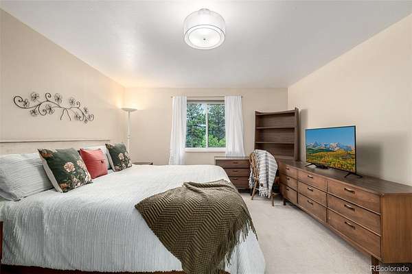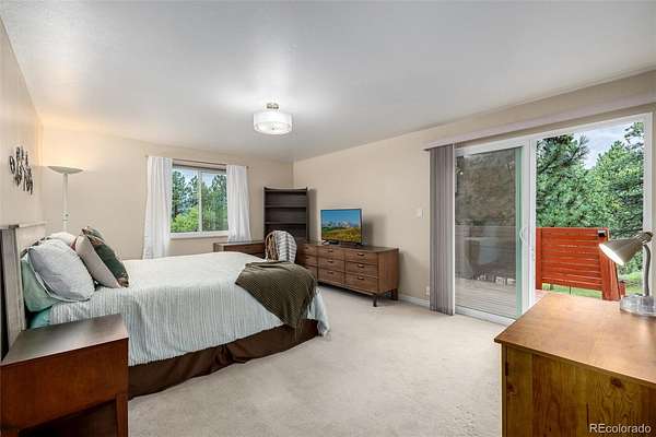 Seller just added a $5500 cedar fence in the back for enhanced seclusion and property meets Jefferson County requirements for short-term rental permitting! Our preferred lender is offering 1/2 point buy-down for 12 months AND $2500 towards closing! A rare blend of space and mountain charm, this Evergreen retreat delivers approximately 3,017 sqft across three well-planned levels on a treed lot. The main floor opens with a tiled foyer leading to an airy living room with a broad bay window, a defined dining area, and a bright kitchen with an adjoining breakfast nook. A flex room offers another gathering zone, while a1/2 bath and main-level laundry keep daily rhythms simple. Upstairs, 4 bedrooms are grouped together for comfort and convenience, including a generous primary suite; a separate hall bathroom serves the additional 3 bedrooms--just the right layout for guests or quiet creative space. The lower level adds a large rec. room for games or workouts, a mirrored closet, an extra room fora nonconforming bedroom, and a utility area which is plumbed and an additional bathroom could be added. Outdoor living shines: a wide deck wrapped by privacy screening features an inset hot tub for year-round soaking, and the primary suite opens to a private balcony to take in the fresh air. An attached 2 car garage plus a detached 1 car garage are included. Thoughtful touches appear throughout: many windows framing treed views, a window seat at the bay, and paths linking the house and decks. Set within the Evergreen community, enjoy mountain-town energy with everyday amenities close at hand. Explore local trails at Flying J Ranch Park, sip at The Well at Bradford Junction, and discover year-round events and festivals. From tranquil mornings on the deck to star-filled evenings in the hot tub, this is a welcoming home base for the Colorado lifestyle. Live in a vibrant mountain community, where nature, convenience, and small-town charm unite to create a perfect lifestyle.
