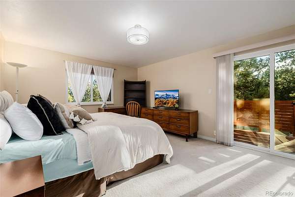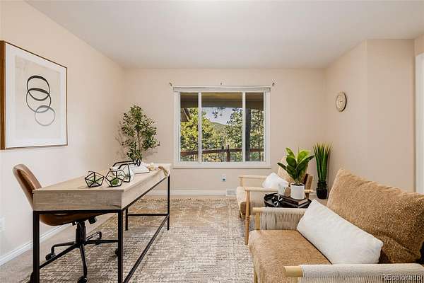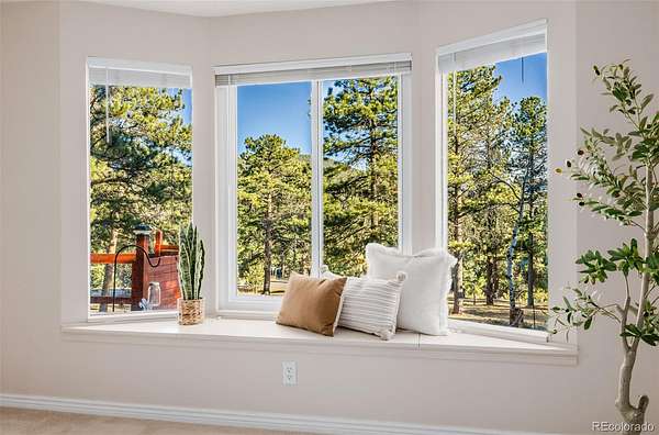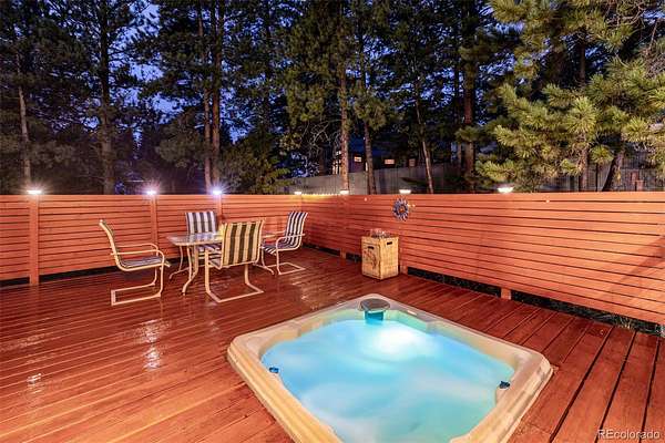 Seller just added a $5500 cedar fence in the back for enhanced seclusion and property meets Jefferson County requirements for short-term rental permitting! Our preferred lender is offering 1/2 point buy-down for 12 months AND $2500 towards closing! A rare blend of space and mountain charm, this Evergreen retreat delivers approximately 3,017 sqft across three well-planned levels on a treed lot. The main floor opens with a tiled foyer leading to an airy living room with a broad bay window, a defined dining area, and a bright kitchen with an adjoining breakfast nook. A flex room offers another gathering zone, while a1/2 bath and main-level laundry keep daily rhythms simple. Upstairs, 4 bedrooms are grouped together for comfort and convenience, including a generous primary suite; a separate hall bathroom serves the additional 3 bedrooms—just the right layout for guests or quiet creative space. The lower level adds a large rec. room for games or workouts, a mirrored closet, an extra room fora nonconforming bedroom, and a utility area which is plumbed and an additional bathroom could be added. Outdoor living shines: a wide deck wrapped by privacy screening features an inset hot tub for year-round soaking, and the primary suite opens to a private balcony to take in the fresh air. An attached 2 car garage plus a detached 1 car garage are included. Thoughtful touches appear throughout: many windows framing treed views, a window seat at the bay, and paths linking the house and decks. Set within the Evergreen community, enjoy mountain-town energy with everyday amenities close at hand. Explore local trails at Flying J Ranch Park, sip at The Well at Bradford Junction, and discover year-round events and festivals. From tranquil mornings on the deck to star-filled evenings in the hot tub, this is a welcoming home base for the Colorado lifestyle. Live in a vibrant mountain community, where nature, convenience, and small-town charm unite to create a perfect lifestyle.