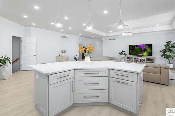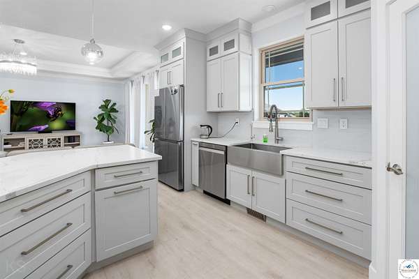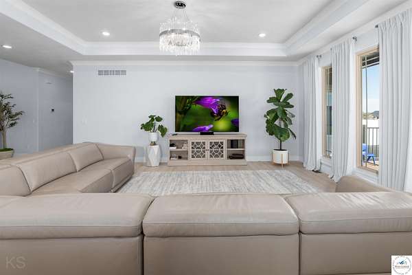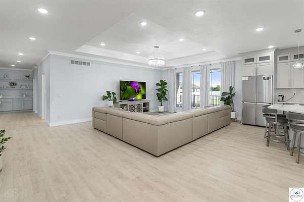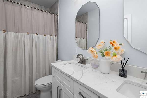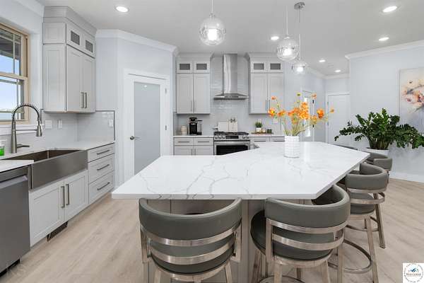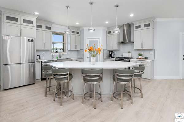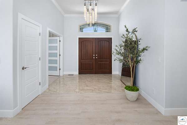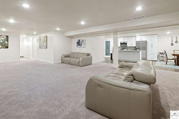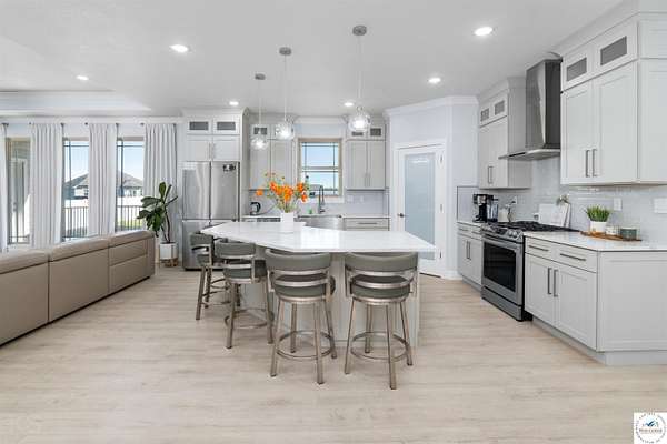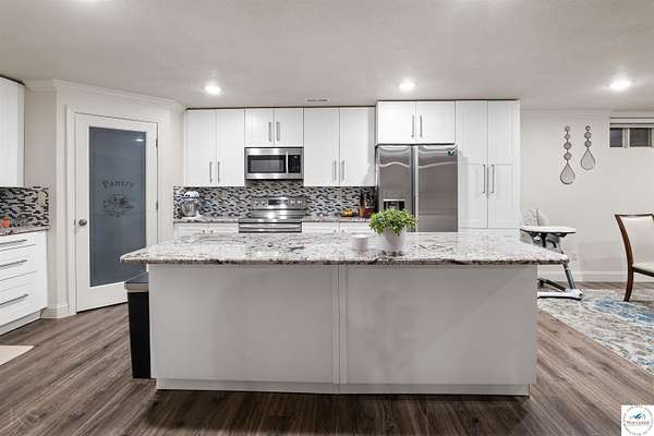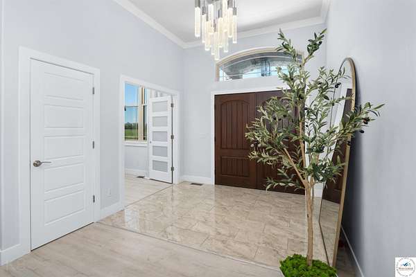 This impressive and luxurious 8 bedroom, 3 bath property with an oversized 2-car attached garage, situated on a pristine 3.21-acre lot just south of town is your dream home! It is the quintessential home for a growing or multi-generational family, or a perfect opportunity for an in-home day care. From the moment you approach the property, the quality of construction and meticulous attention to detail are immediately evident. A newly poured concrete driveway leads from the road all the way to the house, where massive double doors open into an inviting and wide foyer. This grand entrance sets the tone for the rest of the home, leading directly into a spacious living room bathed in natural light. The soaring ceilings throughout the main level enhance the already generous proportions of the rooms, while modern light fixtures, a light and airy color palette, and premium materials showcase a design where no expense was spared. At the heart of the main level lies a gourmet kitchen that is as functional as it is beautiful. It boasts custom cabinetry, quartz countertops, stainless steel appliances, a must-have gas stove, and a pantry. A large central island serves as both a food preparation hub and a casual breakfast area, making it a natural gathering spot. Adjacent to the main living area is a formal dining room, a versatile space that can easily be transitioned into a quiet home office depending on the family's needs. The primary suite offers a private retreat within the home, featuring its own deck access and a spacious walk-in closet. Its attached bathroom is equally luxurious, equipped with a walk-in shower, a double-sink vanity, and an oversized jetted tub designed for relaxation. Each additional bedroom on this level is amply sized, maintaining the home's signature tall ceilings and airy feel. Stepping outside, a wrap-around covered deck made of durable composite materials provides the perfect setting for quiet evenings or large-scale entertaining. Below, a large fenced-in backyard features a specialized rubber-tiled playground area, offering a safe and dedicated space for children to play. One of the most remarkable features of the property is its expansive, finished basement. Accessed by its own separate entrance on the side of the house, this lower level is essentially a second home. It contains four spacious bedrooms, one bathroom, and a fully operational kitchen complete with granite countertops, an island, an electric stove, and a pantry. This kitchen opens directly into a combined dining and large family/recreation room, making the space ideal for adult children, extended family, or long-term guests. Also, there is a separate laundry room with storage cabinets on each floor level. This home is move in-ready, immaculate, and offers lots of storage space. Supporting this vast and luxurious layout is an array of top-tier mechanical systems and heavy-duty construction methods. Built with sturdy 2x6 framing, extra insulation, premium Pella windows, and durable Hardi siding, the home is incredibly energy efficient. Despite its massive footprint, the monthly electric bill ranges from a remarkably low $162 to $220. The home is also equipped with a tankless water heater, a whole-house water filter, softener, and dual reverse osmosis systems serving both kitchens. Safety and utility are prioritized with a private well, an advanced-drip sewer system, a basement sump pump, a sewer lift, and a dedicated tornado shelter. No HOA/dues. Portsville subdivision, restrictions apply. All measurements are done by the software and are approximate. Conveniently located just a few miles outside of town, this estate offers the perfect balance of peaceful country living and quick access to local schools, the hospital, shopping, and dining. Because the current seller is downsizing, this turnkey masterwork is now available, exclusively for qualified buyers looking for their forever home.