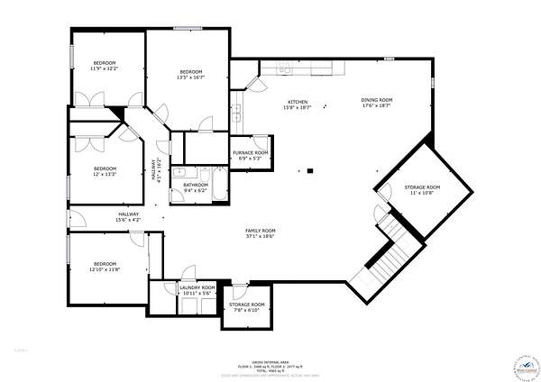 - Bathroom x 3, Bedroom x 5, Dining Room, Family Room, Kitchen, Living Room, Utility Room