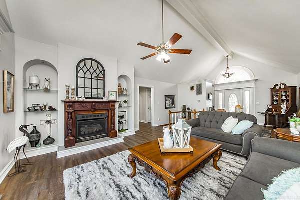 Est $4,015/moSix-bedroom three bath home with acreage. Very meticulously kept home in the country. This is a must see! From the stucco exterior to the Quartz countertops in the kitchen, custom crown molding and trim throughout there was no expense spared on this gorgeous home. Stunning features throughout this well-built custom home. The downstairs has its own entrance and could have the potential for a rental or in law suite. Kitchen, living area, two bedrooms and a bath are all located in the downstairs living area.