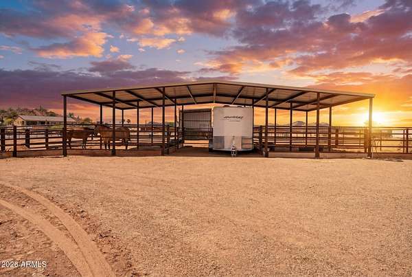 Welcome to your private slice of country living in San Tan Valley! Situated on 3.29 acres, this exceptional property offers the perfect blend of space, functionality, and rural charm--ideal for those seeking room to roam without sacrificing convenience. Built in 2021, this beautifully maintained home features 4 bedrooms and 3 bathrooms, offering modern comfort alongside the freedom of acreage living. The thoughtfully designed layout provides plenty of space for both everyday living and entertaining, all while taking in the serene desert surroundings. Designed with equestrian enthusiasts in mind, the property features a 4-stall covered barn, a dedicated hay barn, and a fully fenced horse area, providing comfort, organization, and security for your animals year-round. The grounds offer ample usable land for riding, training, or expanding your setup, with endless possibilities to customize and make it your own. Beyond the equestrian amenities, the expansive acreage creates a peaceful setting with breathtaking desert views, wide-open skies, and stunning Arizona sunsets. Whether you envision adding an arena, additional structures, or simply enjoying the privacy and space, this property offers the flexibility to fit your lifestyle. Enjoy quiet mornings, star-filled nights, and the freedom that comes with owning acreage, all while being just a short drive from shopping, dining, and everyday essentials. Whether you're looking for a full-time residence, a hobby ranch, or a property with investment potential, this one-of-a-kind horse property checks all the boxes. Don't miss your opportunity to own a piece of Arizona with room to grow, play, and create your dream lifestyle!