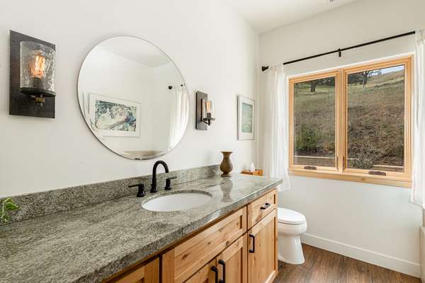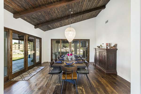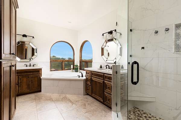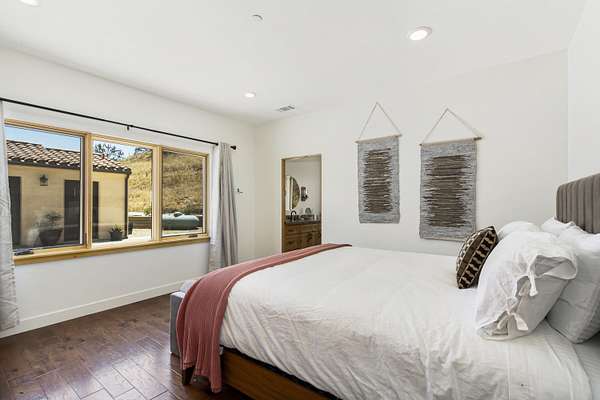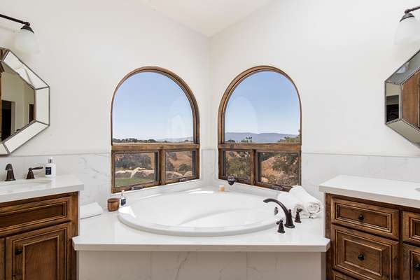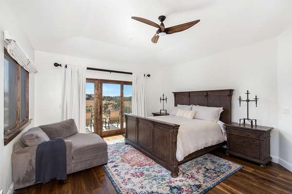 Hilltop Mediterranean estate with legal second residence on 4.47+/- acres. This elevated beauty offers sweeping mountain and valley views. The main residence is a 4 bedroom 3.5 bath custom built home with soaring wood ceilings, large view windows and seamless indoor-outdoor flow to the covered outdoor living area with fireplace and TV. 1 of the bedrooms is a complete suite with private entrance. Enjoy the peace of your private hillside retreat. Expansive 4 car garage with 240V EV charging. Independent legal second residence is a 2 bedroom, 2 bath 1,178 sf home with detached 2 car garage built in the same Mediterranean style. 2nd residence has independent address and private driveway--ideal for guests, extended family, staff or passive income. Both homes share a reliable 600 ft well with the neighbor. This is a rare offering with 2 fully independent residences and no HOA.