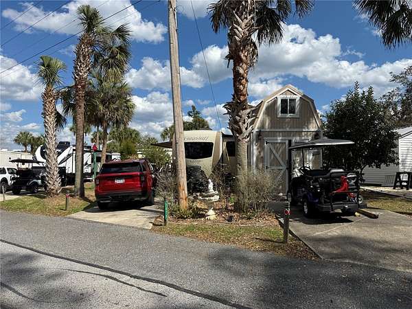 Great easy access for any size rig you have. This lot is right off the main oversized road. Comes with a lofted shed that has 10 gallon hot water heater, washer and dryer and 200 amp service. Huge wood deck 17'x8' to step out from your RV to enjoy morning coffee or cocktails in the evening. Also offered separately the 2017 Flagstaff Classic Super Lit model 831CLBSS RV at $23,000. And the 2022 EZ-GO gas powered, lifted golf cart at $7000. Should you want everything at one great price for $105,000. Escape to the Great Outdoors but just minutes to downtown Silver Springs. Come and enjoy Wilderness RV Resort. 55+ magnificent river front community. Come enjoy all Ocala has. 55+ Oasis awaits you. This is a 55+, however if you are not 55yrs old you can still buy in here. You just can't live in it permanently. But you can rent it out when you are not enjoying it for yourself. Can be used for short and /or long-term rental makes this property a great income producing property. It feels like you are out in the middle of wilderness with the river and the forest. But jump on Hwy 40 and go just 7 miles and everything you want is there. Enjoy the day kayaking from Silver Springs Park take the river downstream you can pull your kayak out here at the resort. There are Jeep trails minutes away. Fine dining and all that historic downtown Ocala is just minutes away. Kid Friendly 2 weeks at a time are allowed. There is so much to do Kayaking, walking trails, community Pool and many more amenities are offered within the community, Located near multiple state parks such as Silver Springs, Juniper Springs, Salt Springs, Museums, Nature trails. Come and enjoy nature at its finest.