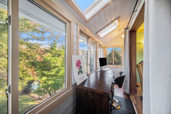 Set on 10 acres, the property is zoned agricultural and can accommodate up to 9 horses. The stable and equestrian center features 11 stalls, a heated tack room, observation room, and an incredible 60 x 152 indoor arena. Pasture, paddocks, an outdoor arena, and a round pen are in place. Solar power + battery back up provide power supplemented by grid power as needed for the entire estate.