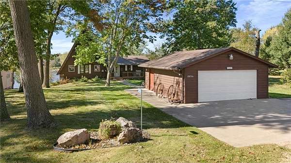 Blue Lake Home with 150 Ft of Shoreline + Extra Lot. Enjoy lake living on Blue Lake with 150 feet of shoreline and beautifully designed outdoor spaces. This 3 bedroom, 2 bathroom home is perfectly set up to take advantage of everything lake life has to offer—boating, fishing, and swimming right from your own property. Outdoor features shine with a large deck, and a beautifully landscaped lakeside patio, creating the perfect setting for relaxing or entertaining while enjoying the lake views. A Juliette balcony adds charm and another place to take in the scenery.