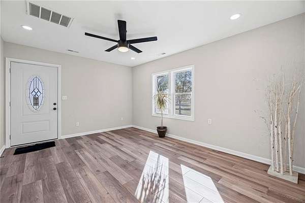 Wake up to peace, space, and wide-open beauty. This completely rebuilt bungalow offers the rare combination of modern luxury and quiet country living-set on nearly 2 acres where deer wander and life slows down just enough. Taken down to the studs and rebuilt from the ground up, this 3-bedroom, 2-bath home is truly better than new. Inside, you'll find brand-new flooring, quartz countertops, custom cabinetry, a designer backsplash, and a generous pantry-every finish carefully chosen for both style and function. The open, light-filled layout is perfect for gathering, entertaining, or simply enjoying the calm. Outside is where this home truly shines. Sip your morning coffee on the front porch swing, unwind on the partially covered back porch, or dream up your perfect garden, hobby space, or room for animals to roam. With nearly two acres, the possibilities are endless. Major systems? All done. New roof, siding, windows, septic system, plumbing, and electrical provide the peace of mind buyers crave. The warm modern farmhouse palette of creams, soft greens, and rich browns adds timeless character throughout. Move-in ready, thoughtfully designed, and surrounded by nature-this is more than a home, it's a lifestyle. Schedule your showing before someone else claims this slice of country perfection.