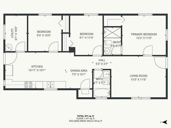 - Bathroom x 2, Bedroom x 3, Dining Room, Laundry Room x 2