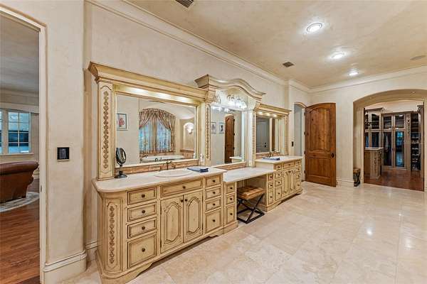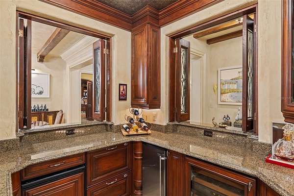 - Built-In Features, Ceiling Fans(s), Central Vaccum, Crown Molding, Elevator, High Ceilings, Open Floorplan, Primary Bedroom Main Floor, Solid Wood Cabinets, Split Bedroom, Stone Counters, Thermostat, Tray Ceiling(s), Vaulted Ceiling(s), Walk-In Closet(s), Wet Bar, Window Treatments
