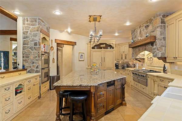 Designed as a true estate compound, the property is anchored by a 12,000sf European inspired main residence and supported by a 2,300sf guest house, an 800sf private cottage, and a 5,040sf fully air conditioned car barn with soaring 20ft ceilings. Seventeen garage spaces, RV accommodations, a private fueling station, and helicopter access reflect an exceptional level of infrastructure and versatility rarely found in a single residential offering.