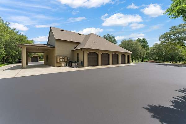 The air conditioned car barn is a standout feature, offering 20ft ceilings, office suite, kitchenette, half bath, and capacity for ten or more vehicles, complemented by a covered RV bay with water and electric hookups, flexible event space, and helicopter pad. Recent upgrades ensure the estate is turnkey and built for long-term ownership, including fiber-optic gigabit internet, five new generators, sixteen new HVAC systems, three new water heaters, new roofs on the guest house, cottage, and car barn, and a newly screened front porch.