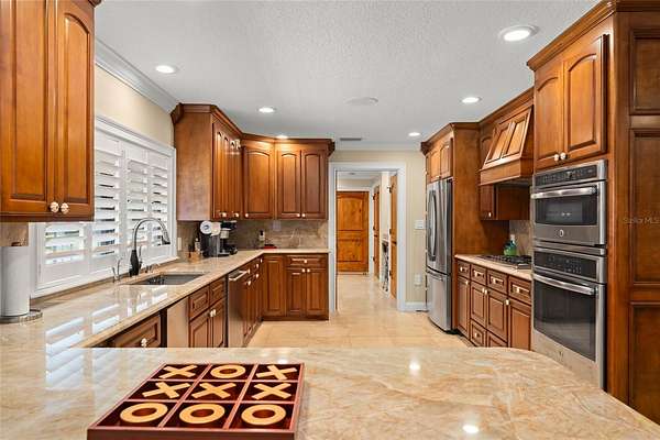 At the heart of the residence, the chef’s kitchen overlooks the tropical oasis pool area and is designed for gathering and entertaining,. Featuring Thermador gas cooking, Dacor ovens, SubZero refrigeration, Bosch dishwashers, warming drawers, beverage coolers, custom cabinetry, and an expansive prep island ideal for both daily use and large-scale hosting.