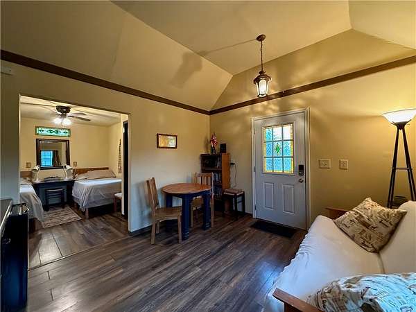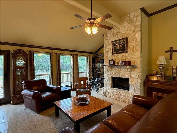 Welcome to The Evensong Retreat nestled in the heart of Concan, Texas! This charming three-bedroom, two-bathroom home is perfectly set on over 6 peaceful acres of rolling Hill Country terrain. Designed with timeless country styling and modern comfort in mind, the home features a spacious open-concept layout, raised ceilings, and rustic finishes throughout. Large windows fill the space with natural light and offer serene views of the surrounding oak-dotted landscape. The main house offers cozy, well-appointed bedrooms, a large living area perfect for family gatherings, and a modern farmhouse-style kitchen with ample storage and stainless-steel appliances. Outdoors, the large back porch invites you to relax with a morning coffee or evening drink while watching the wildlife wander through the trees. Adding to the property's appeal is a fully separated and highly successful Airbnb or guest house-ideal for generating income or hosting friends and family. Tastefully decorated and comfortably equipped, it offers privacy, its own entrance, and a proven rental history. A large barn offers storage, workspace, or potential for hobby farming, while the beautifully designed chicken coop-both practical and stylish-brings a touch of whimsy and function for those dreaming of fresh eggs and country living. Tucked away near the seasonal dry creek is a serene private chapel, perfect for reflection, intimate gatherings, or simply enjoying the quiet beauty of nature. With plenty of space to explore, garden, or expand, this unique property blends rustic luxury with endless opportunity in one of Texas' most scenic regions. Whether you're looking for a family homestead, vacation getaway, or income-generating retreat, this Concan gem truly has it all.