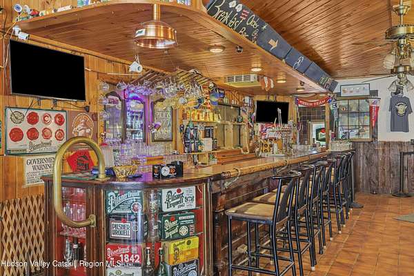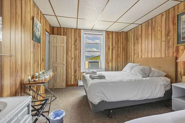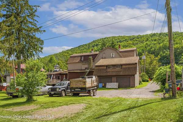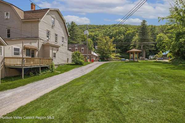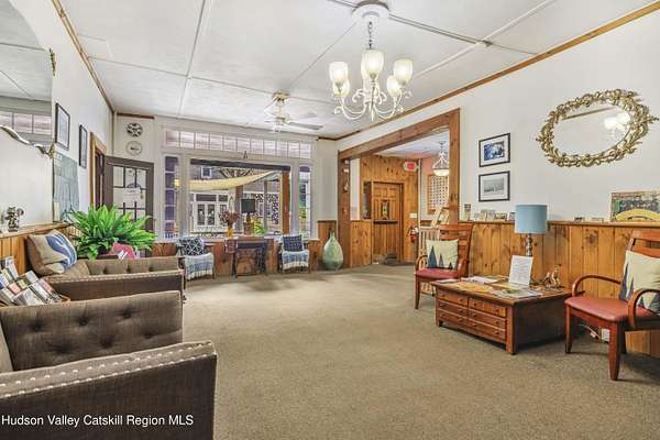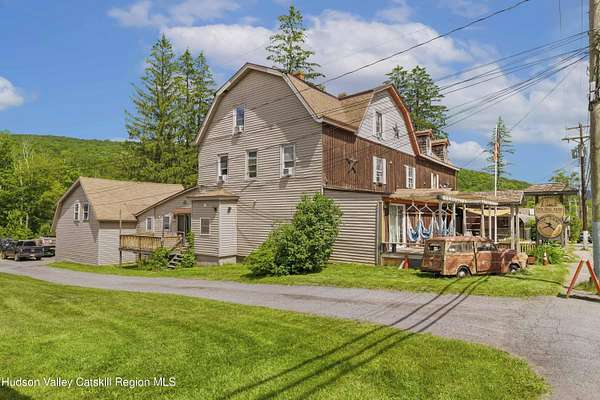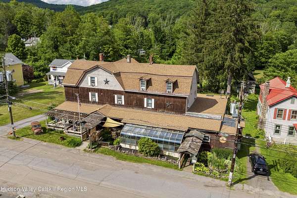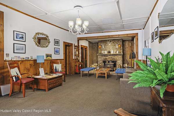 The Pine Hill Arms - a Catskills classic, ready for revival! Built in 1882 and set on nearly 2 acres in the heart of Pine Hill, this historic 15-bedroom inn with full-service restaurant, bar, and cafe offers a rare opportunity to reimagine a beloved Catskills institution. With a total interior square footage of over 10,000 sq ft, the property features a spacious lobby, commercial kitchen, offices, games room, and flexible gathering and event spaces. Also included are a rear outdoor terrace, a two-car garage, a separate two-bedroom apartment with its own entrance, and a three-bedroom carriage house. The property is connected to municipal water and sewer, has a liquor license, and has space for off-street parking for approximately 30 vehicles. Zoning supports a wide range of commercial and hospitality uses. The gardens to the rear of the property border Birch Creek, offering a picturesque natural backdrop and ample outdoor space for hosting weddings and seasonal events-making it an especially appealing venue for event-based hospitality. While significant renovation or redevelopment is needed, the potential is extraordinary. Imagine transforming the restaurant and bar into a sought-after apres-ski gathering place for Belleayre Mountain visitors, or a cozy cultural hub for locals, weekend visitors from the city, hikers, and rail trail explorers. With thoughtful design, this historic space could once again become a true community anchor-serving locally inspired cuisine, craft cocktails and beer, along with warm Catskills hospitality. Located directly on Main Street with walkable access to the new rail trail linking the village directly to Belleayre Beach and Highmount, the Pine Hill Arms is ideally positioned to contribute to the village's revitalization. A number of commercial developments are already underway or in the planning stages-including a new food market, four retail storefronts, and expanded municipal parking-adding to Pine Hill's growing appeal as a year-round destination for tourism, recreation, and culture. Belleayre Mountain, just minutes away, continues to benefit from major state investment-including a high-speed gondola, expanded snowmaking, and new base lodge facilities. Its long ski season and growing calendar of four-season events draw visitors throughout the year. As an added benefit, the property may well qualify for historic tax credits, state incentives, or local grant programs aimed at encouraging the restoration and adaptive reuse of heritage buildings-offering potential financial support for visionary redevelopment. This is a compelling opportunity for a creative investor or hospitality operator to help lead the next chapter in Pine Hill's story.