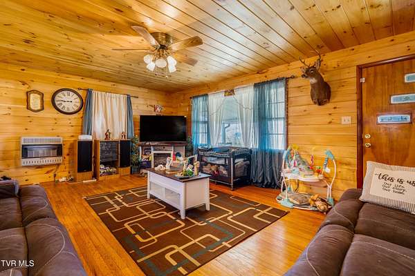 Welcome to this beautiful one-level ranch style brick home offering the perfect blend of comfort and country charm. Featuring 3 bedrooms and 1 bath, this home sits on a spacious 1.60 -acre lot with a gently sloping yard-ideal for enjoying outdoor living. Inside, you'll find a mix of hardwood and laminate flooring, along with unique tongue-and- groove wall accents that add warmth and character. The home is equipped with propane gas heat and includes an unfinished basement, providing excellent storage or future expansion potential. Enjoy relaxing mornings on the inviting front porch and unwind in the evenings on the back patio. Additional features include a one-car carport and a durable metal roof installed in 2021. This property offers peaceful living with plenty of space to make it your own! Buyer and buyers agent to verify all information.