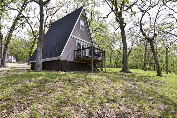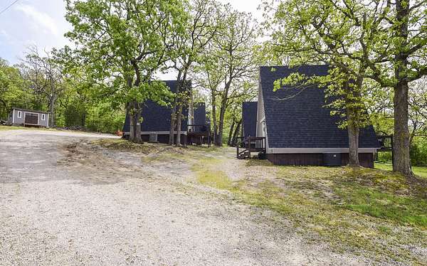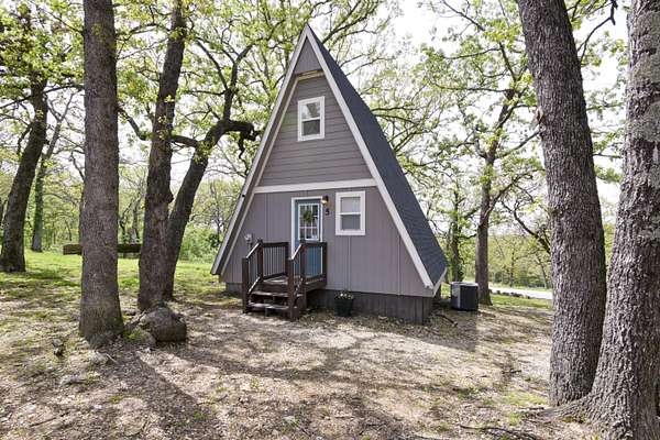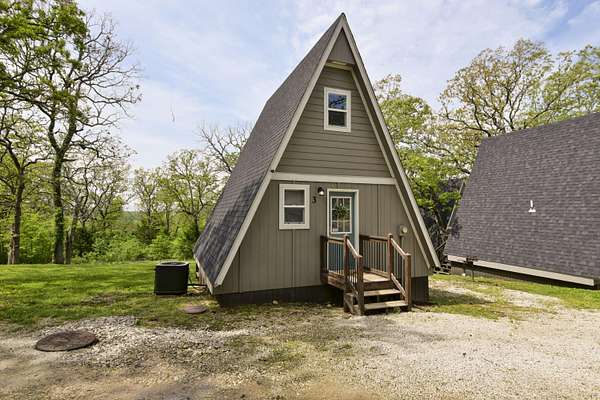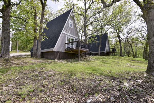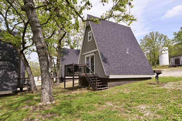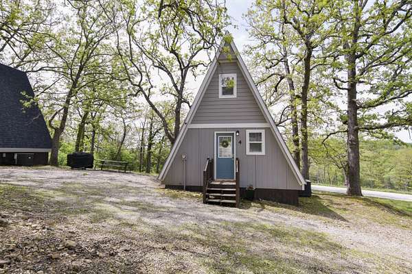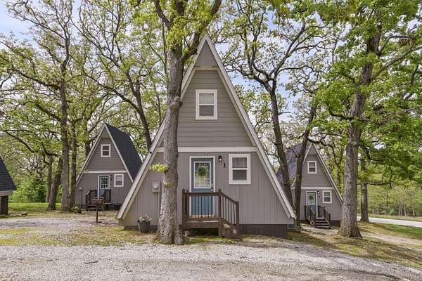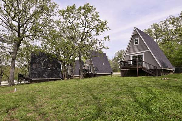 Ozark Paradise! 5 A-Frame on appx 2.80 acres of Ozark Beauty and Trees with lots of parking area, newly refurbished and decorated to the T. Short Term Rental opportunity close to Table Rock Lake, Baxter Marina and Black Oak Amphitheater. This opportunity is unlike many others because it really caters to Family or Group Vacations and outings to ''Getaway From it All''. The Cabins are similar yet unique, sleeping six, nice decks, nicely appointted, and brings people back to the quiet, easy lifestyle and enjoying nature and quality time.. Private bedroom on main level with private bath, kitchen, dining and living room. the loft area features 2 beds. Great outdoor space private and common area. As an Investor, the units had great reviews with ARBNB, but you can self manage or use any management company. The County may require a new STR Permit. The Location is excellent. The property requires not outlay of capital to get started. There is opportunity for expansion, up to 3 more cabins with utility service and land allocation. Shared Well and Septic.