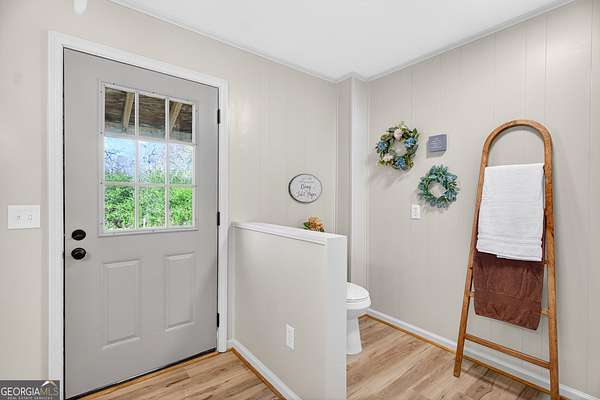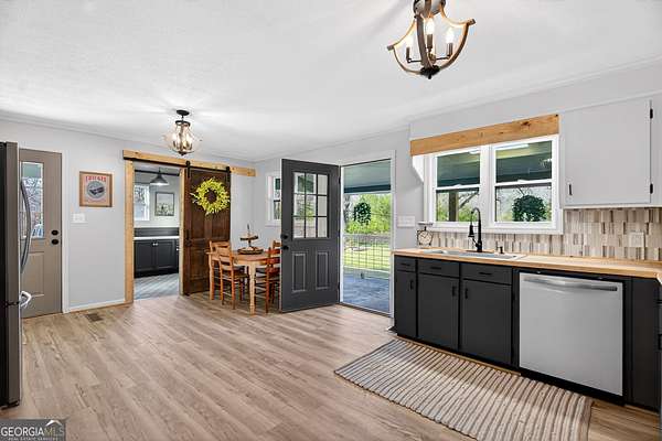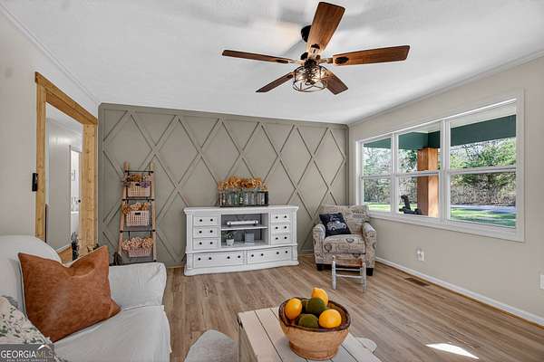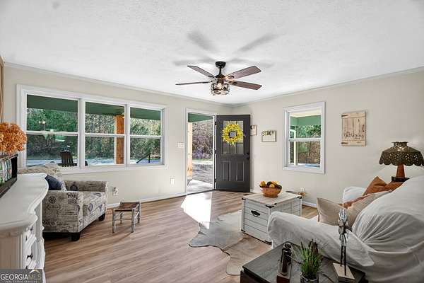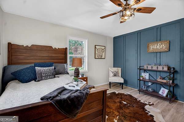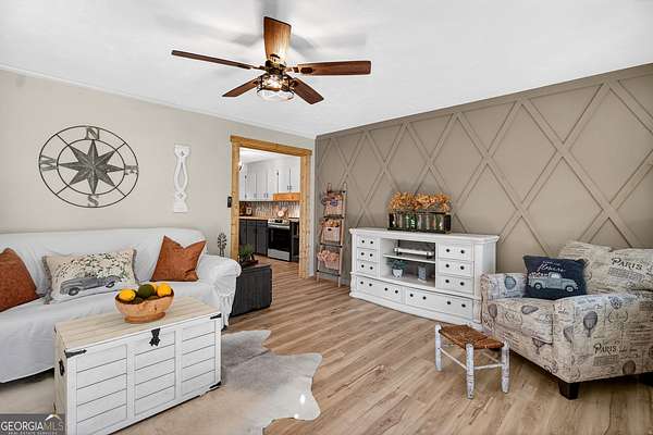 If you've been searching for the perfect blend of charm, space, and modern updates-this is it! This single-level ranch offers 3 bedrooms, 2 baths and a bright open floor plan, all completely renovated from top to bottom and truly move-in ready. Inside, you'll love the open, airy floor plan, Living room offering decorative wainscoting, the kitchen offers breakfast area, featuring a beautiful farmhouse sink, and hardwood floors throughout. The oversized laundry room adds extra functionality, while the spacious master suite on the main boasts an extremely oversized walk-in closet-perfect for all your storage (and shoe!) needs. Step outside and enjoy front porch living at its finest, or relax on the private back patio overlooking your spacious backyard. Sitting on a level 3.55-acre lot with a pond, this property offers the peace and privacy you've been dreaming of. Plus, a concrete storage building provides even more convenience. With 1,416 sq ft of beautifully updated living space and room to roam, this one checks all the boxes! Don't miss your chance-schedule your showing today!