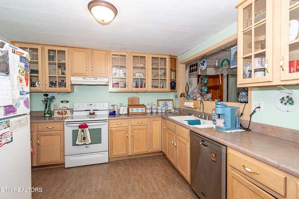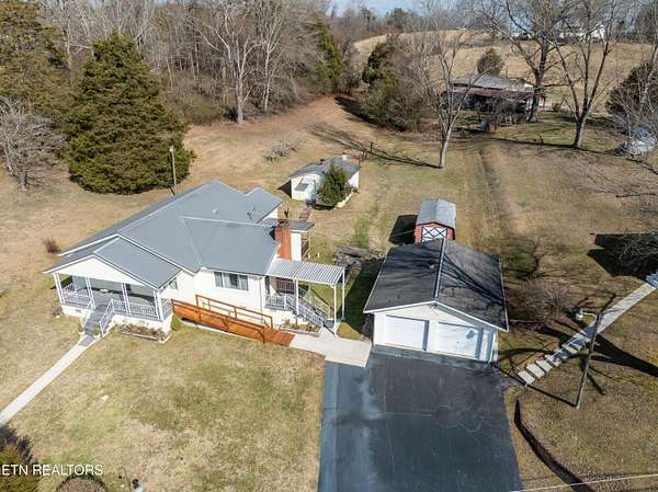 Set on 4.6 acres, this rare property includes two separate residences, creating flexibility that's hard to find. The main home offers 3 bedrooms and 2 baths with approximately 1,500 square feet, while the secondary residence provides 2 bedrooms and 1 bath with approximately 750 square feet. It's an ideal arrangement for multigenerational living, extended guests, or a potential revenue generating space that could help offset ownership costs. At the heart of the main home, an oversized kitchen anchors everyday living, while the living room invites you to slow down around a wood-burning fireplace and take in views of the open field beyond. It's the kind of space where mornings are quiet, evenings are unhurried, and deer wandering through the yard are part of the daily rhythm. A large portion of the acreage sits across the road, offering flat, usable land with a creek at the back. The setting feels almost tailor-made for a future homesite, a barn, or simply a peaceful escape where nature sets the pace. Rather than dividing the property, the road separation creates privacy and opportunity for future development of a long-term vision. The two homes share a driveway yet maintain clear separation, offering connection without compromise. Public water and internet are available, and the setting feels comfortably rural while remaining just minutes from Watts Bar Lake, making it easy to enjoy boating, fishing, or quiet afternoons by the water. This is a place for those who value space, flexibility, and a slower kind of luxury. It's a place where the land, the setting, and the possibilities matter just as much as the homes themselves.
