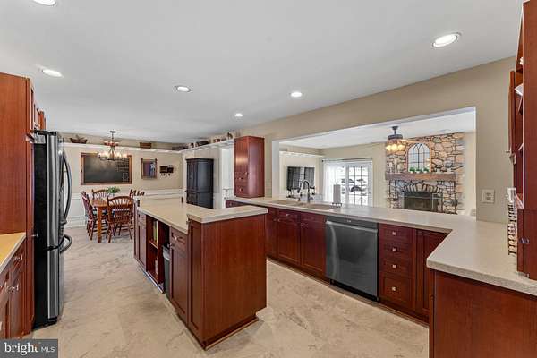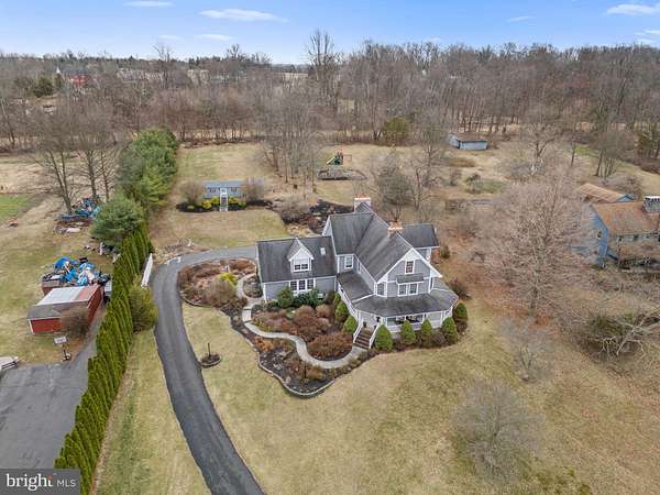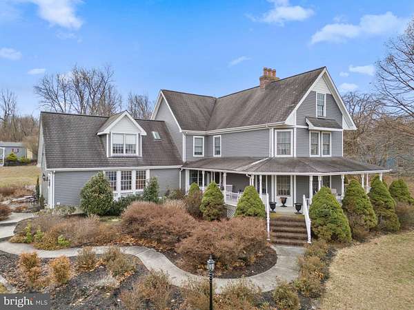 Welcome to your dream home! This exquisite 4-bedroom, 2.5-bath custom-built Victorian sits on a sprawling 2 acres in the highly sought-after Souderton School District. As you step into the grand foyer, you are greeted by gleaming hardwood floors that flow seamlessly into the formal living and dining rooms. The elegant wrap-around railing leads you to the second floor, adding a touch of sophistication to the space. The living room features a charming river rock fireplace and offers French doors that open to the beautifully landscaped backyard, where you can enjoy relaxing on the paver patio surrounded by lush gardens. The large eat-in kitchen is a chef's delight, boasting a bay window, center island, and ample counter space, making it ideal for entertaining. The cozy family room, complete with a brick fireplace is flanked by custom built-ins, perfect for showcasing your favorite decor. For year-round enjoyment, the inviting 4-season sunroom is filled with natural light, providing a perfect retreat. You'll appreciate the convenience of a first-floor laundry and a powder/mudroom, adding to the home's functionality. Retreat to the second-floor primary suite, which features its own fireplace and a large, recently renovated en suite bath complete with a double vanity, free-standing tub, glass shower stall, and a spacious walk-in closet. Primary bedroom closet accessible from bedroom or hallway; potential to convert to 2nd-floor laundry room. Three additional bedrooms and a beautifully updated guest bath round out the second floor. Need extra space? A large bonus room is accessible from the second floor and through the garage, while the third floor has been roughed in for additional living space. The full basement includes a finished room that can be further developed for all your needs. Rounding out the property is an oversized 3-car garage, as well as a 50-year architectural shingle roof. Don't miss the opportunity to make this stunning Victorian your forever home!