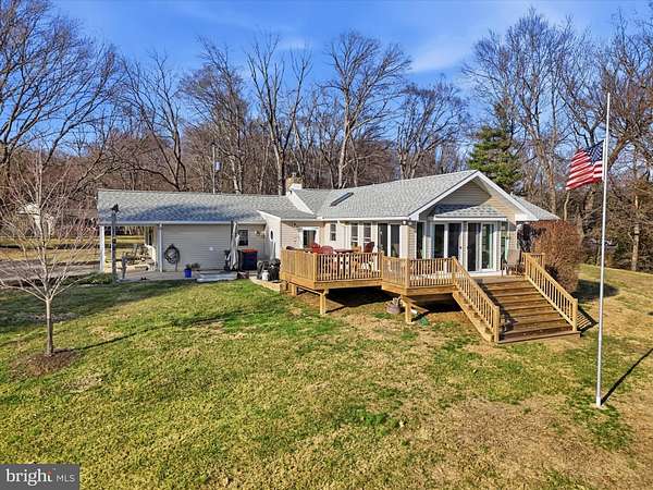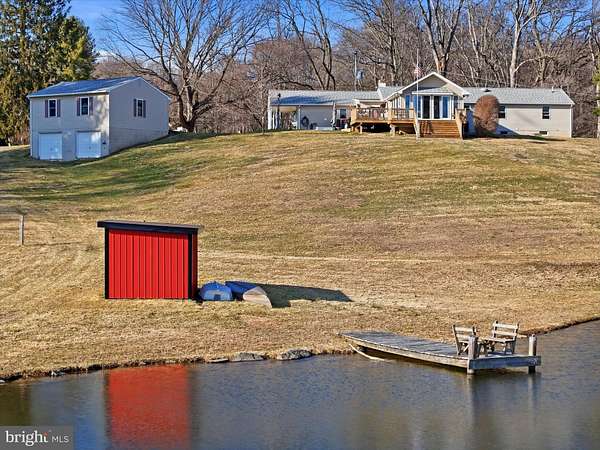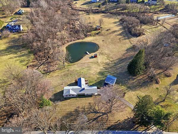 Set on approximately 9 picturesque acres with a tranquil private pond, this charming ranch-style home offers a rare opportunity to enjoy peaceful country living while remaining conveniently close to everyday amenities. With 4 bedrooms, 2 full bathrooms and 1 half bathroom, and 2,418 square feet of finished living space, the home provides a comfortable layout designed for both relaxation and entertaining. Upon entering, you are welcomed into a bright and inviting living area centered around a cozy fireplace-an ideal gathering space for family and guests. The home features an oversized kitchen with abundant space for cooking, dining, and entertaining, complemented by a convenient mudroom just off the kitchen that adds functionality for daily living. Just off the main living area, a second spacious family room provides additional room to relax, entertain, or gather, offering flexible living space ideal for everyday comfort or hosting larger groups. Just beyond the kitchen, a beautiful sunroom with expansive windows overlooks the scenic pond, creating a peaceful setting to unwind while enjoying the natural surroundings. The sunroom also provides direct access to the rear deck, allowing for a seamless connection between indoor and outdoor living. All four bedrooms are located on the main level, including a primary bedroom suite featuring its own private half bathroom, bringing the total to two full bathrooms and one half bathroom. The large basement offers additional flexibility, ideal for a recreation room, home office, gym, workshop, or creative space, and includes another full bathroom. The attic is also partially floored, providing additional storage space for seasonal items and household needs. Outside, the property truly shines. The private pond, open acreage, and scenic setting create an exceptional outdoor environment. Enjoy relaxing on the deck overlooking the water, or spend time outdoors casting a line and fishing right in your own pond-a favorite feature that visitors and guests often notice immediately. The expansive acreage offers tremendous versatility, with the potential to accommodate horses or other livestock, and may also present subdivision possibilities for future development or additional homesites, subject to township approvals. A standout feature of the property is the large two-story detached garage. The upper level comfortably accommodates two trucks, while the lower rear-entry level includes two additional garage bays, offering excellent space for equipment storage, workshop use, hobbyists, or car enthusiasts. The home has been thoughtfully maintained and improved over the years, including a remodeled kitchen, updated bathrooms, replacement windows and exterior doors, newer HVAC systems, plumbing updates, and a recently constructed sunroom and decks. Additional recent improvements include a new roof (2024), upgraded laundry room, and new kitchen flooring. Additional features include durable vinyl siding with stone accents, upgraded barn and shed structures, and ample space for equipment, hobbies, or agricultural use. Conveniently located near local shopping, dining, and major commuting routes, this property presents a unique opportunity to enjoy space, privacy, and natural beauty while remaining close to modern conveniences.