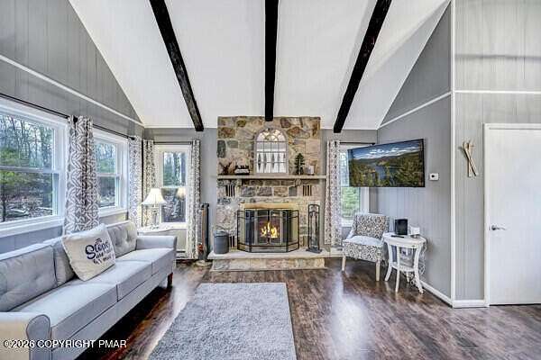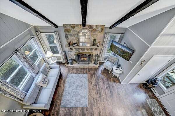 Welcome to 288 Moseywood Road in Lake Harmony! Located in the heart of the Pocono Mountains, this spacious and amenity-filled mountain retreat is the perfect blend of recreation, comfort, and investment potential. Offering 3 bedrooms plus a loft, 2 bathrooms, and sleeping accommodations for up to 12 guests, this home is ideally suited as a vacation getaway, primary residence, or high-performing short-term rental. Being sold fully furnished and turnkey, it's ready for immediate enjoyment or rental income from day one. Inside, you'll find an inviting layout designed for entertaining and large gatherings. The open living area provides a warm and welcoming space to relax after a day on the lake or the slopes, while the kitchen offers ample room for cooking and hosting. The loft area adds flexible sleeping or lounge space, maximizing guest capacity and rental appeal. The full, partially finished basement is set up as a game room, creating the ultimate hangout zone for guests of all ages-perfect for rainy days or apres-ski fun. Step outside to enjoy the privacy and serenity of the property's 1.61-acre setting, offering plenty of space to relax, entertain, and take in the natural mountain surroundings. Unwind year-round in the private hot tub, a favorite feature for both owners and guests alike. Additional highlights include solar panels for energy efficiency and a 2-car attached garage providing convenience, storage, and protection from the elements. Conveniently located near Lake Harmony, Big Boulder, and Jack Frost, you'll have easy access to boating, beaches, skiing, golf, dining, and all the four-season amenities the Poconos are known for. Whether you're searching for a spacious personal retreat or a large-capacity, fully furnished turnkey rental investment, 288 Moseywood Road offers the space, amenities, and location today's buyers are looking for.