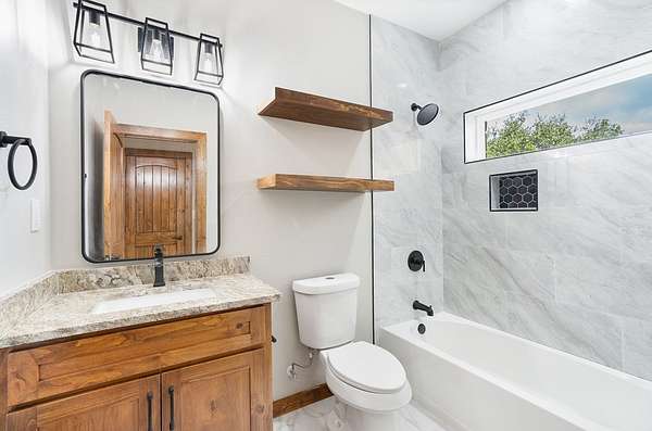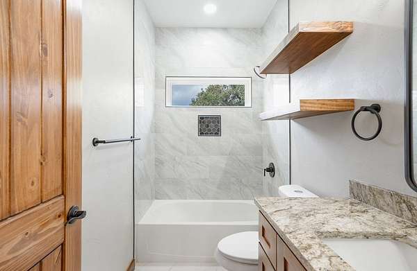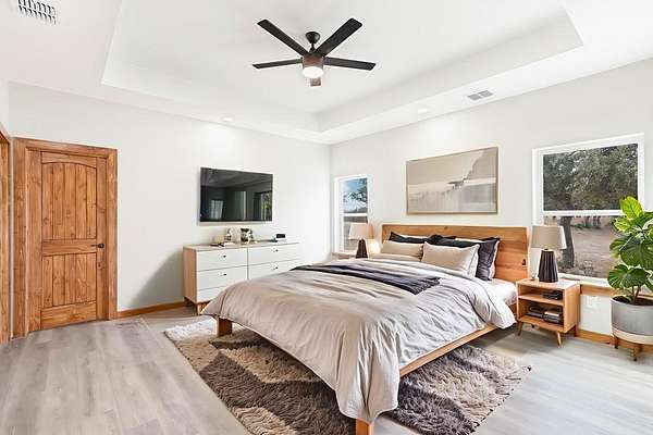 Custom New Build on 4.3 Acres Welcome to Reservation Ranch, a gated community in Harper TX just minutes from both Kerrville and Fredericksburg. This newly built 4-bedroom, 3-bath home offers the best of Hill Country living: peaceful surroundings, quality craftsmanship, and modern comfort. The masonry exterior on all four sides and flagstone entryway create timeless curb appeal. Inside, an open floor plan invites effortless entertaining with a spacious living room featuring vaulted wood ceilings, an electric fireplace with stucco facade, and a wall of windows framing the natural landscape. The island kitchen serves as a second dining space and showcases stainless steel appliances, custom wood cabinetry, and plenty of prep space. Durable luxury vinyl plank flooring runs throughout the home, offering easy maintenance and a seamless flow from room to room. The primary suite is a relaxing retreat with dual vanities, a walk-in shower, and a jetted soaking tub perfect for unwinding at day's end and the massive walk-in closet with custom shelving may require a shopping spree to utilize properly! Enjoy evenings on the covered flagstone back porch surrounded by mature Post Oaks and native Hill Country scenery. Additional highlights include an attached two-car garage . access to the community's central water system..reasonable restrictions. Experience the beauty of nature paired with the comfort of modern living. Whether you're looking for a peaceful retreat or a place to raise a family, this property is the one!
